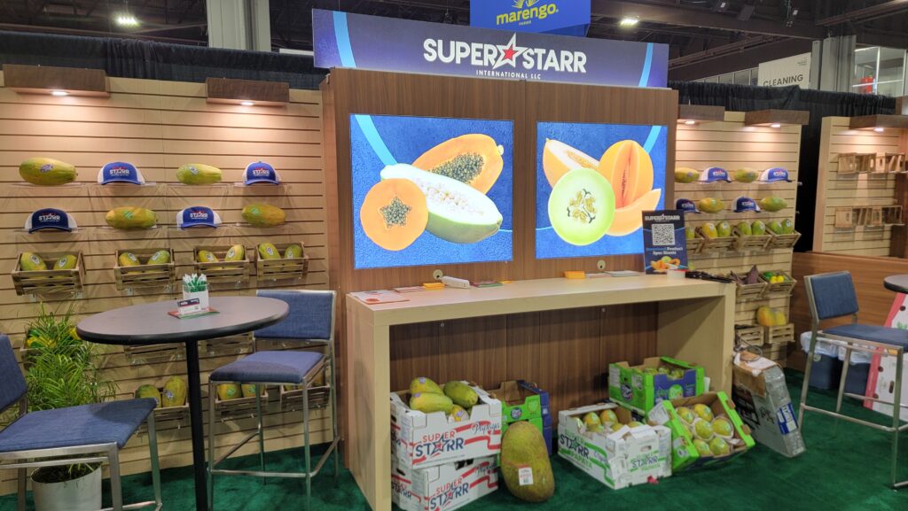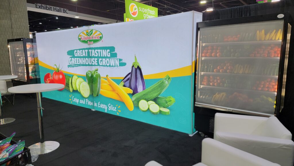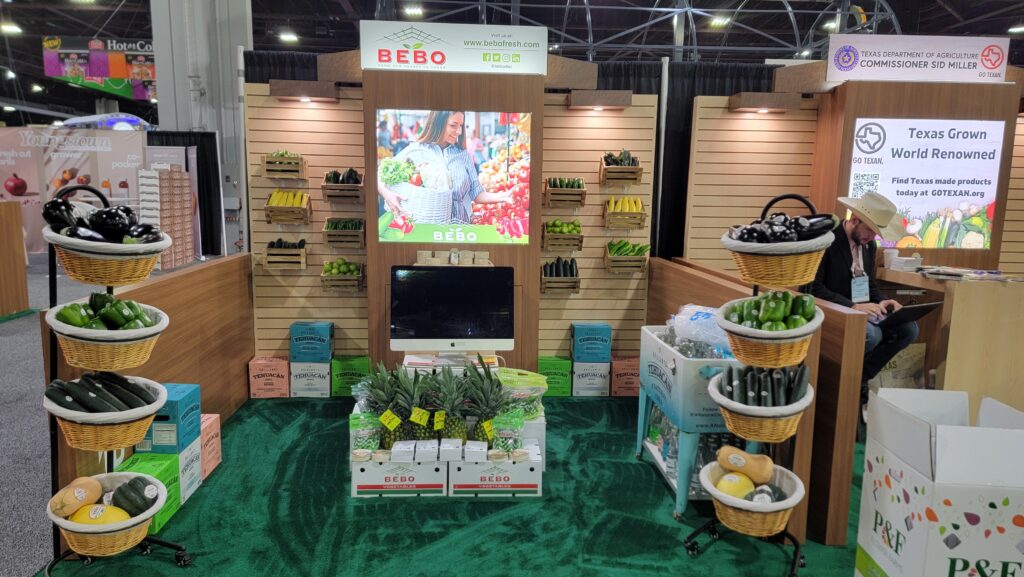 The Texas International Produce Association has a cohesive state pavilion. Your display will be customized with your company’s logo and graphics.