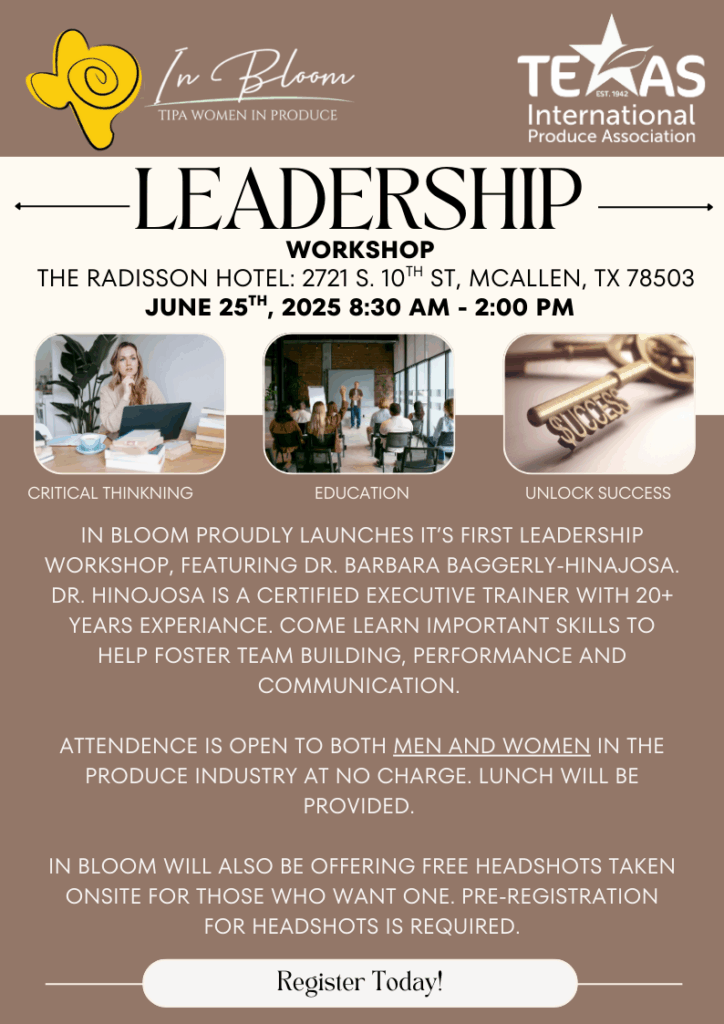 The Texas International Produce Association (TIPA) and In Bloom are proud to present their first-ever Educational Leadership Workshop, featuring Dr. Barbara Haggerly-Hinojosa. Dr. Hinojosa, a certified executive trainer with over […]