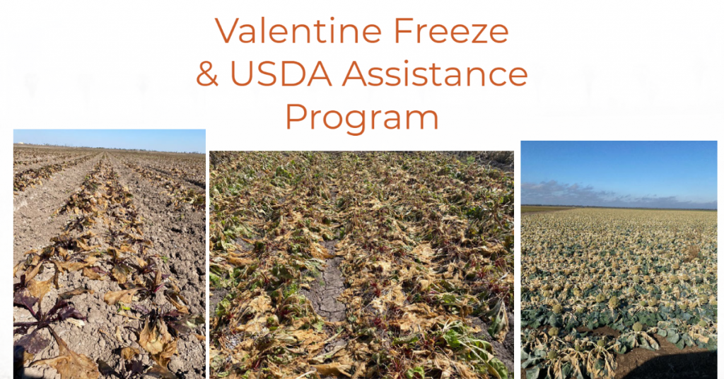 For those growing operations that were impacted by the Valentine Freeze (aka Texas Winter Storm, aka Winter Storm Uri), we did want to make you aware of 2 existing USDA Disaster Relief programs. The best thing to do right now is CONTACT YOUR FSA OFFICE. Tell them what you lost in the freeze (commodity + acreage). You want to at least have the damages “on file” as quickly as possible.